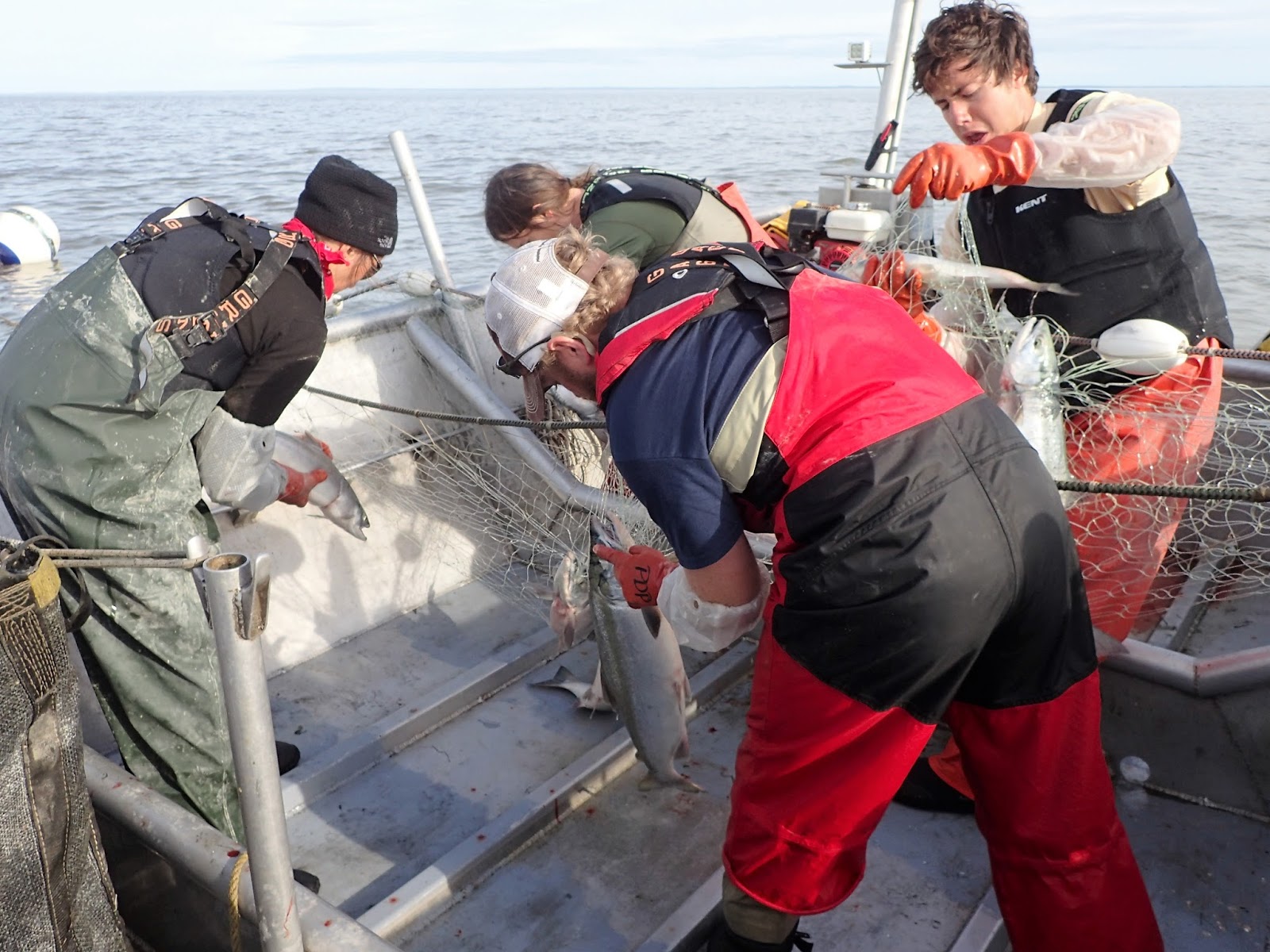 It wasn't a really heavy tide, but it was respectable and it gave the crew picking practice. It was really hard to keep my hands off and let them figure it out. Here we are, so happy that there are enough fish for everyone (but me) to pick.